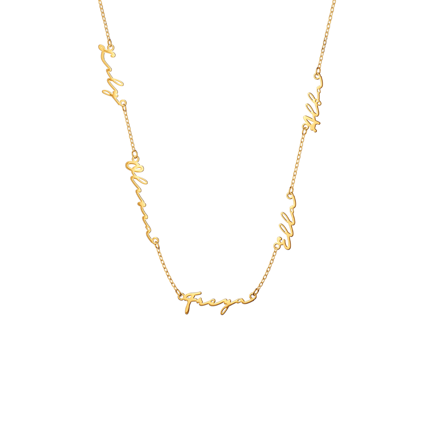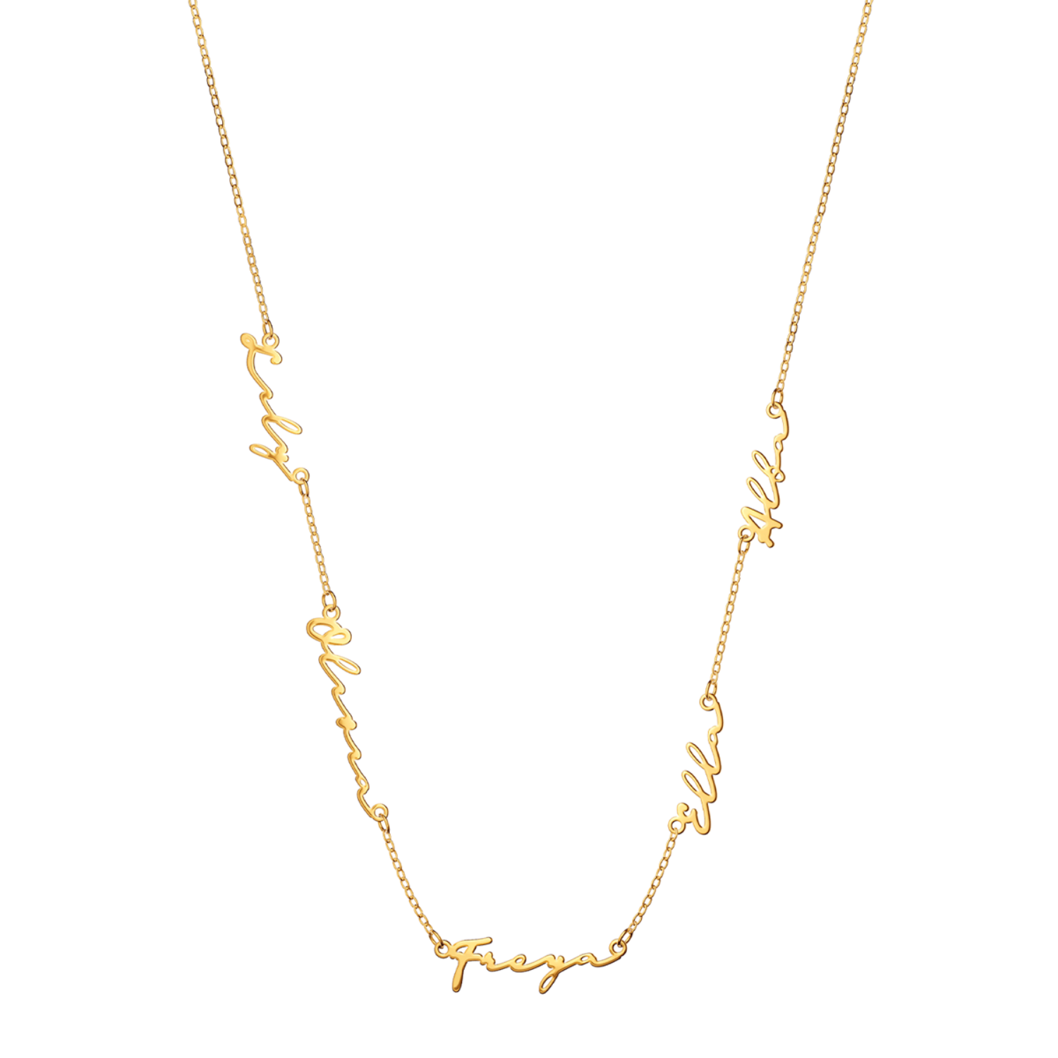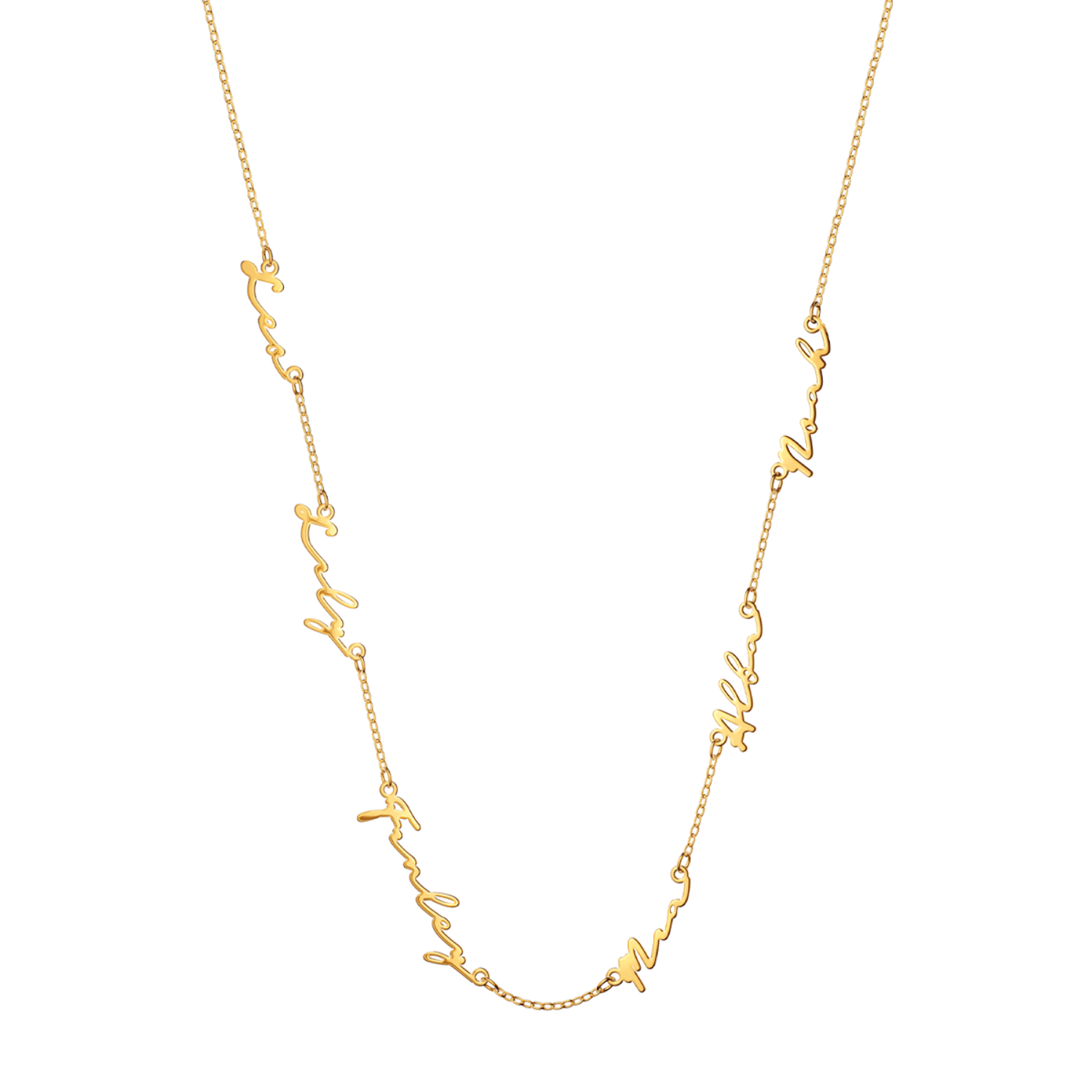 Your favorite piece just got even more meaningful. Our bestselling name necklace now comes with space for up to six names. Add the names of loved ones or spell out a saying close to your heart, like 'be true to you' or 'always and forever.' The perfect self-love gift for yourself or that special someone...