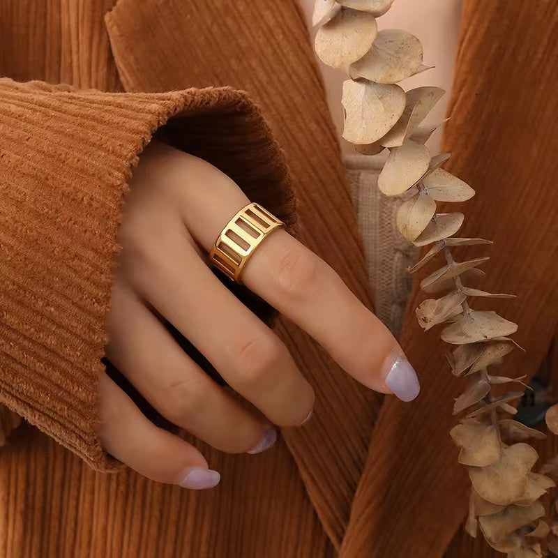 18K PVD Gold Plated Stainless Steel Jewelry Hollow Adjustable Opening Rings