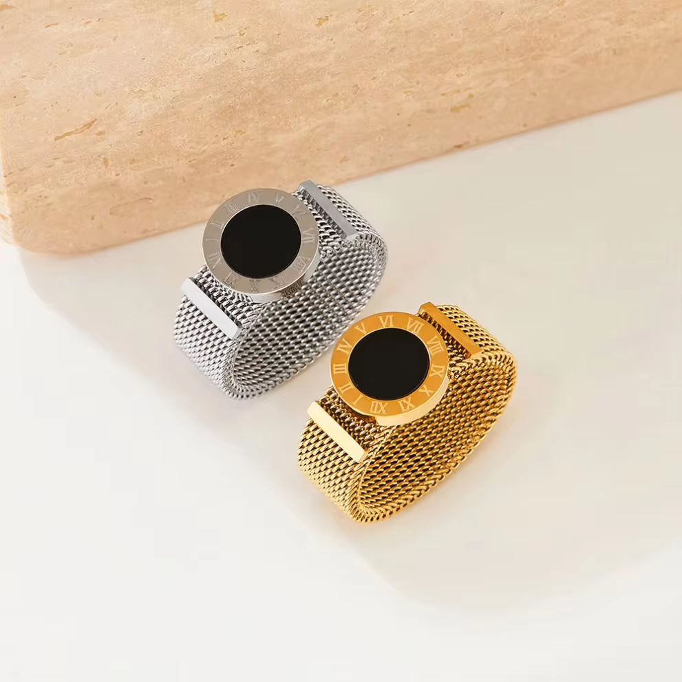 Ins Fashion 8Mm Wide Women&Men Watch Band Ring Stainless Steel Mesh Roman Numeral Shell Ring